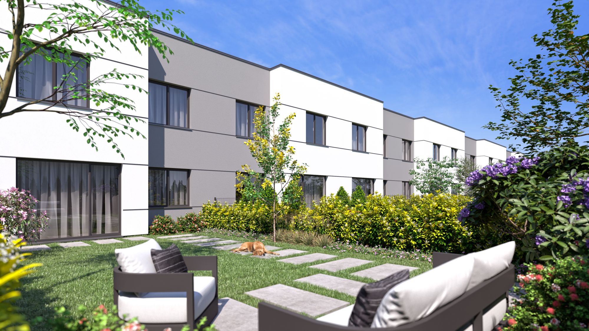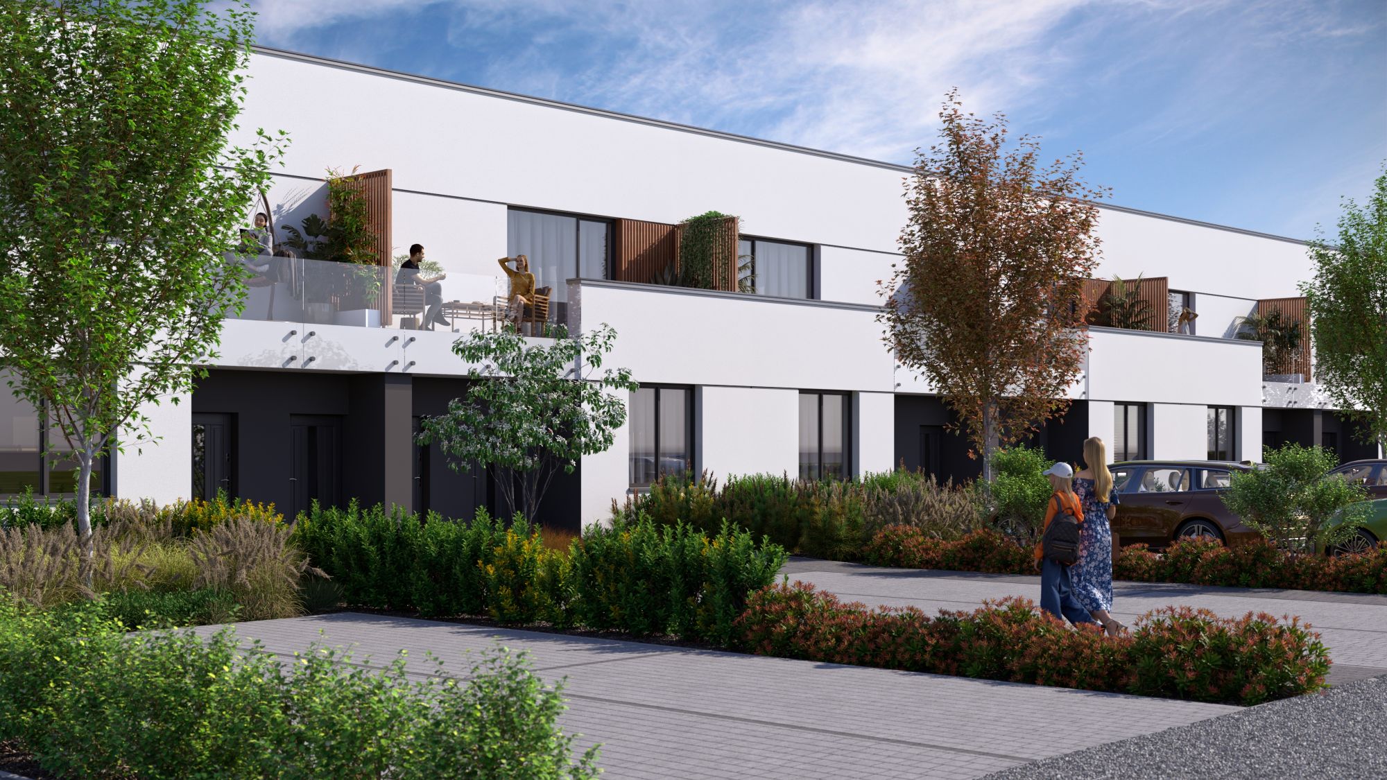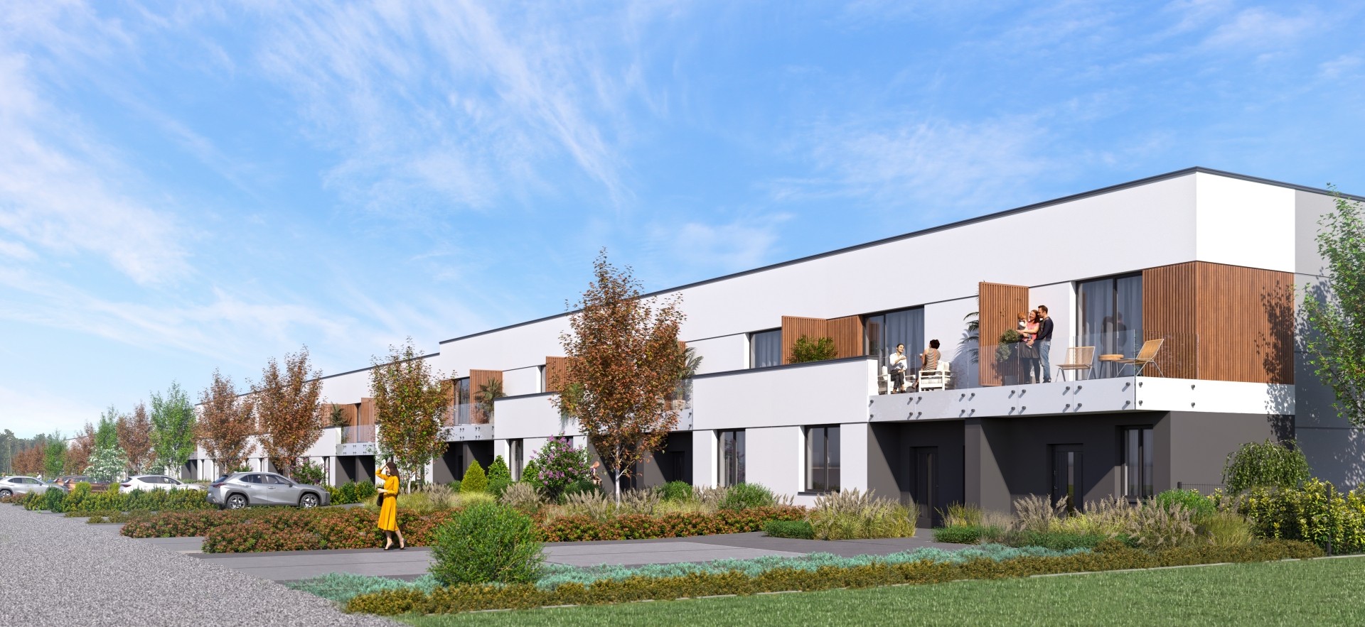 Każdy apartament oferuje własną strefę na świeżym powietrzu – ogród na parterze lub taras na piętrze – naturalnie przedłużającą część dzienną. To przestrzeń, z której korzystasz na co dzień urządzając rodzinne spotkania, pielęgnując rośliny czy po prostu odpoczywając po pracy.
